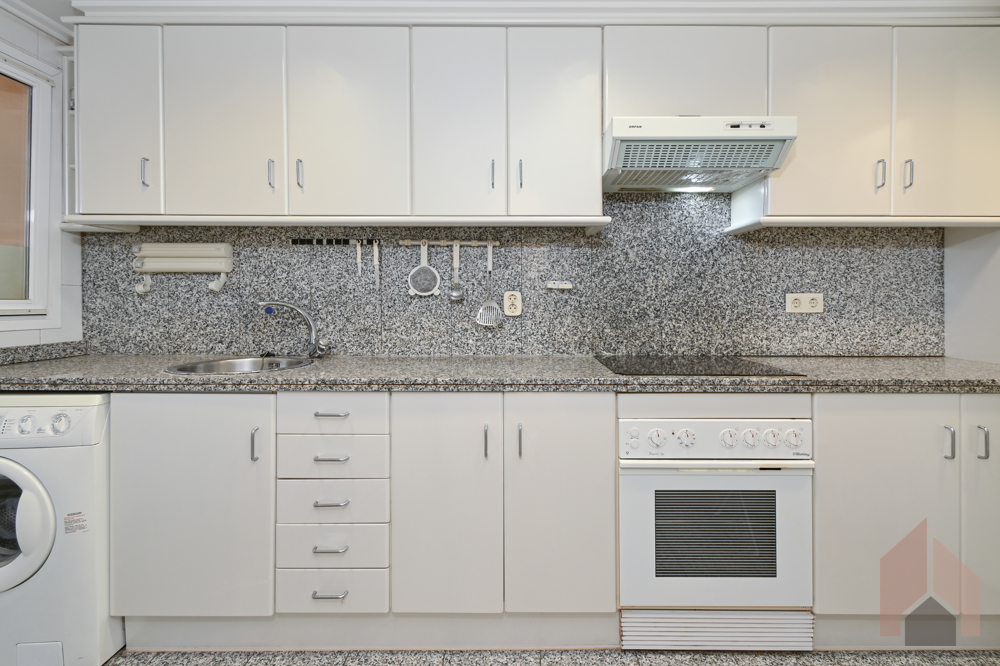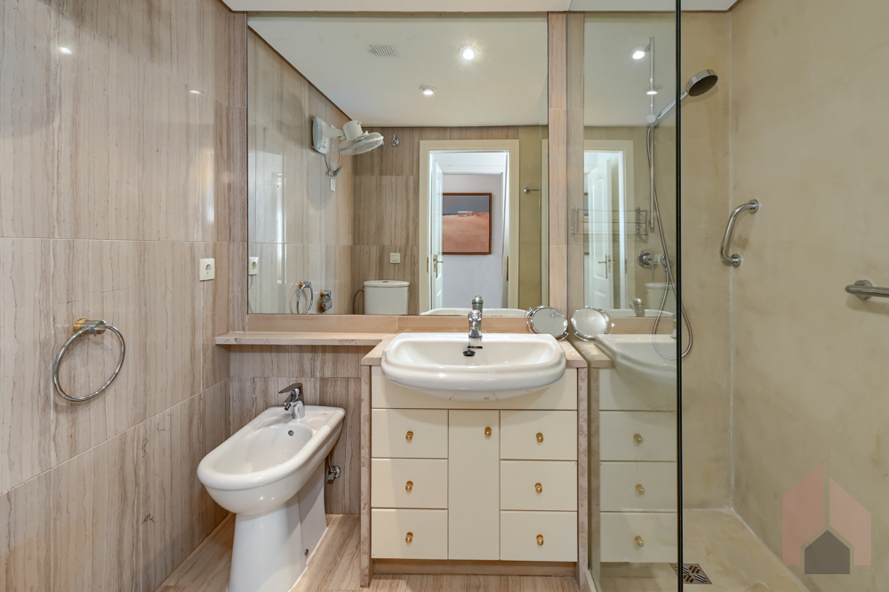The 164 m2 constructed area offers 3 spacious bedrooms and 2 bathrooms, a living/dining area and a separate kitchen with adjoining laundry room and an additional storage room. There is also a large balcony around the corner with views of the sea and the mountains.
